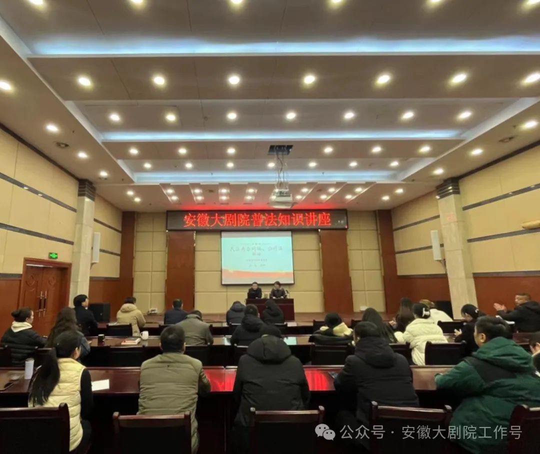 本次普法知識講座主題黨日活動,目的是提高安徽大劇院干部職工在合同管理等方面的知識和水平。