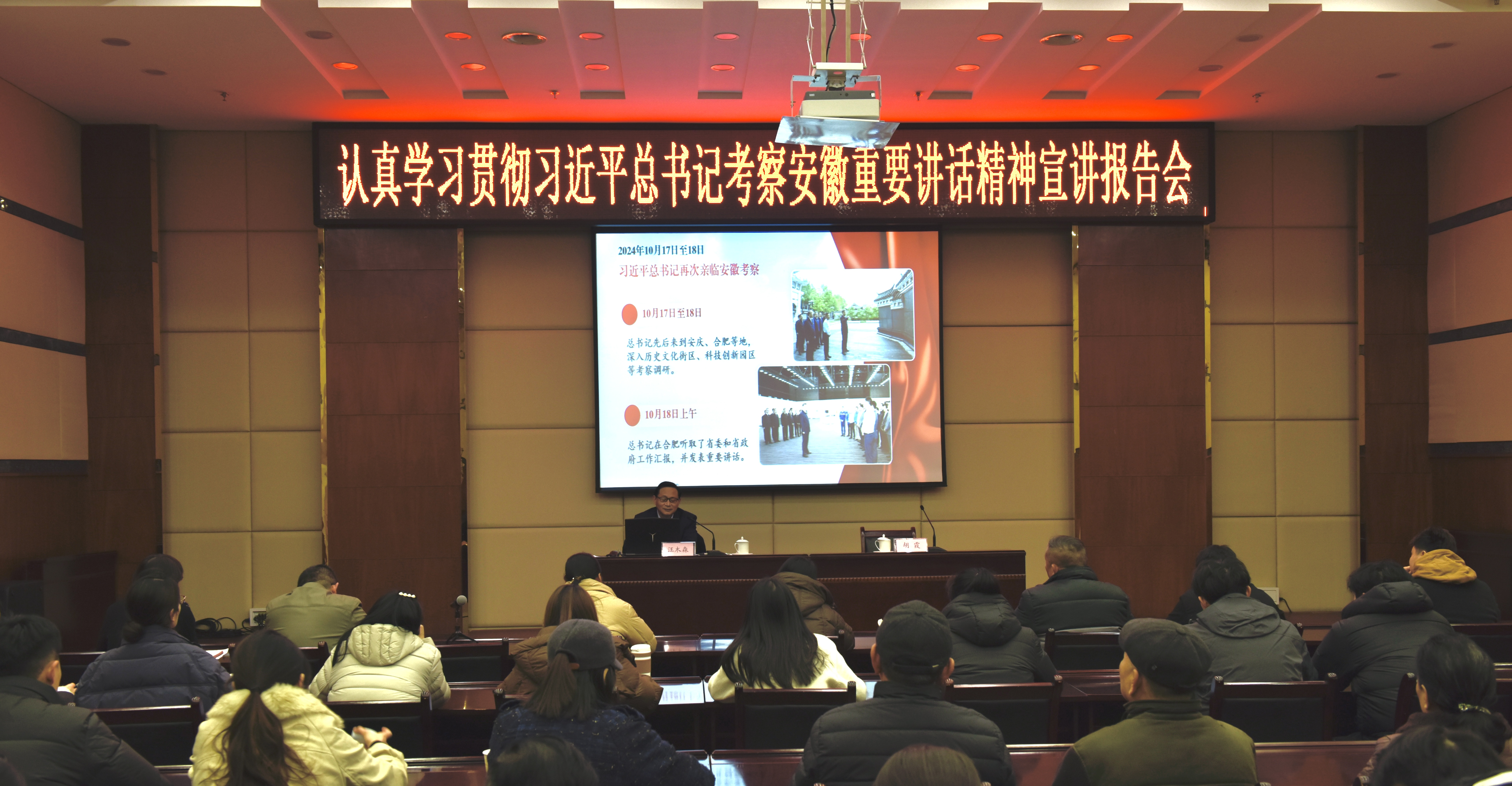 報(bào)告會(huì)從充分認(rèn)識(shí)習(xí)近平總書(shū)記考察安徽重要講話的重大意義、深刻領(lǐng)會(huì)習(xí)近平總書(shū)記考察安徽重要講話精神的豐富內(nèi)涵、切實(shí)推動(dòng)習(xí)近平總書(shū)記考察安徽重要講話精神落地生根三個(gè)方面,結(jié)合實(shí)際,深刻闡釋和解讀了習(xí)近平總書(shū)記考察安徽重要講話精神。
