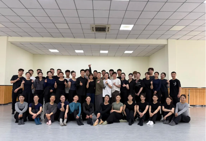 基訓課程緊密圍繞現(xiàn)代舞的核心要素精心設計,涵蓋身體開發(fā)、連接技法、綜合組合、氣息組合以及風格組合等多方面內(nèi)容?;栠^程中,尚老師通過深入淺出的細致講解和親身示范,引導舞蹈團成員深入理解現(xiàn)代舞的內(nèi)涵與技巧,鼓勵演員大膽突破傳統(tǒng)舞蹈的束縛,去追求動作、情感與空間表達上的自由,挖掘自身獨特的藝術表達。演員們從基礎的身體感知訓練入手,逐漸掌握了現(xiàn)代舞獨特的動作連接方式,學會了運用氣息推動舞蹈動作,塑造富有個性的舞蹈風格。教學過程中還安排了大量的課堂練習和創(chuàng)作實踐。