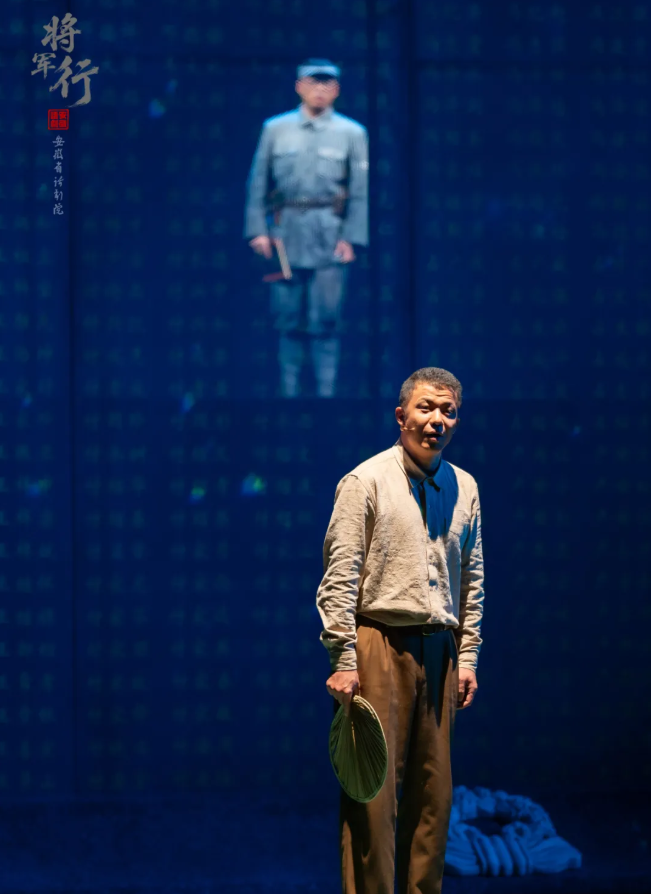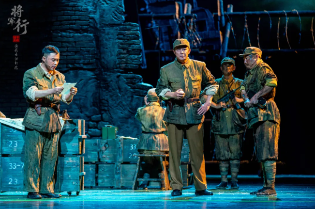 《將軍行》以晚年洪學智回家鄉(xiāng)金寨縣探訪為主線,通過現實與回憶的交織,再現了從抗日戰(zhàn)爭、解放戰(zhàn)爭到抗美援朝時期的崢嶸歲月。劇中,年近九旬的洪學智在妻子張文和受其資助的北大學生梁燕的陪伴下重返故土金寨,雪山突圍、四平血戰(zhàn)、搶修清川江大橋等歷史場景在舞臺上依次展開,既展現了將軍的軍事才能和人格魅力,也深刻揭示了革命者的信仰與擔當。青年學子梁燕的成長歷程,則象征著紅色精神的代代傳承。