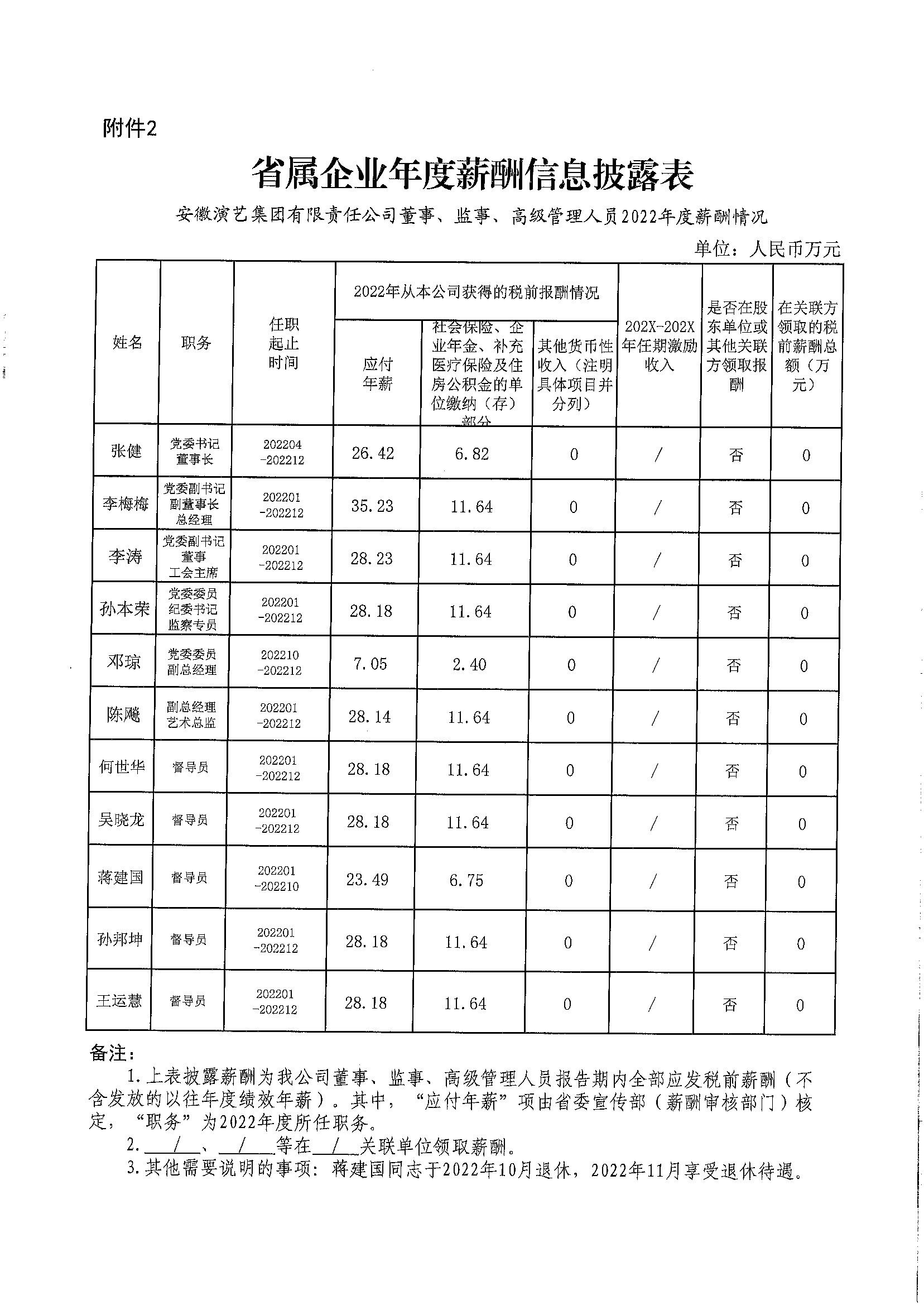 省屬企業(yè)負責人2022年度薪酬信息披露表