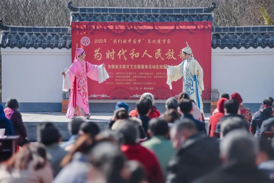 本次活動是省文聯(lián)2022年“我們的中國夢”——文化進萬家活動系列活動之一,也是“文藝進萬家 健康你我他”學(xué)雷鋒文藝志愿服務(wù)活動之一,是廣大文藝工作者進一步加強作風建設(shè),堅持人民至上,深入基層、服務(wù)群眾的具體行動。省文聯(lián)黨組成員、副主席、書記處書記林勇參加活動。 活動由安徽戲劇名家工作室、省劇協(xié)青年戲劇家之友、省黃梅戲劇院及肥東縣文聯(lián)承辦,長臨河鎮(zhèn)人民政府和長臨河鎮(zhèn)文聯(lián)協(xié)辦。