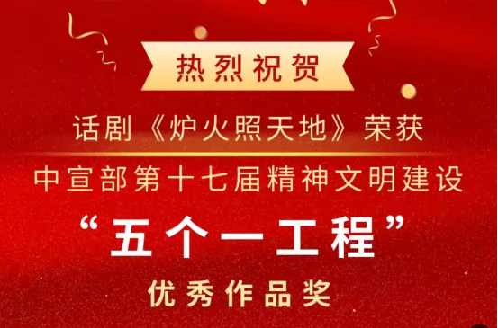 12月3日,中共中央宣傳部印發(fā)表彰決定,對(duì)第十七屆精神文明建設(shè)“五個(gè)一工程”組織工作先進(jìn)單位和優(yōu)秀作品進(jìn)行表彰。授予話劇《爐火照天地》等105部作品“優(yōu)秀作品獎(jiǎng)”,授予安徽等15個(gè)省區(qū)市黨委宣傳部“組織工作獎(jiǎng)”。