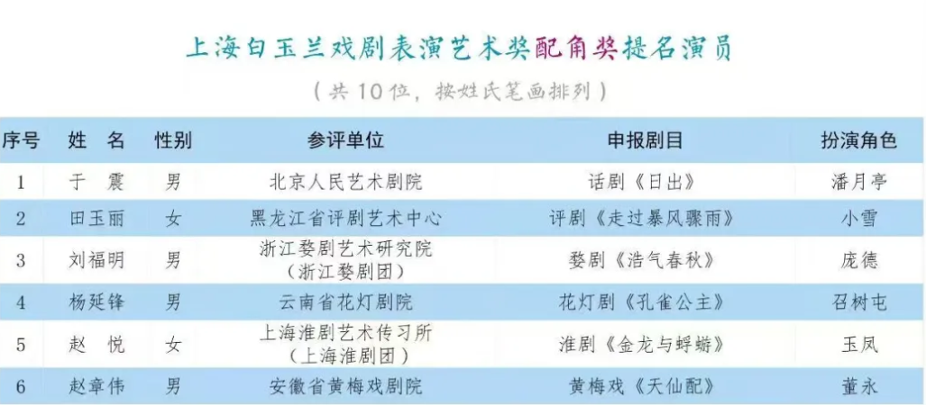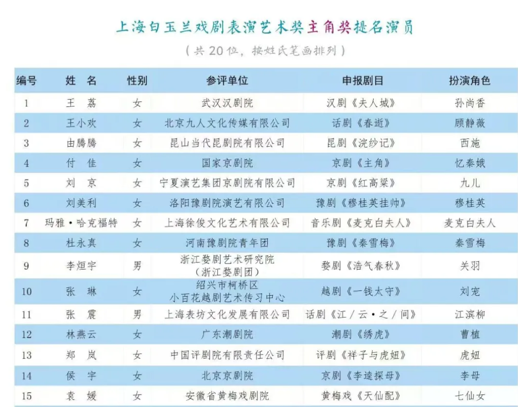 據(jù)悉,本屆白玉蘭獎提名獎演員共40人,其中主角獎20人、配角獎10人、新人主角獎5人、新人配角獎5人。2月27日晚,白玉蘭獎頒獎晚會將在上海文化廣場舉行,現(xiàn)場將揭曉各獎項(xiàng)名單。