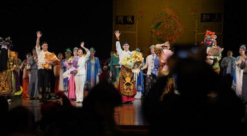 當(dāng)晚,演出現(xiàn)場1600座座無虛席,線上直播平臺觀看人數(shù)高達23.6萬人。演員們精彩絕倫的演繹與扣人心弦的音樂、美輪美奐的舞美融為一體,觀眾們的情緒也跟隨著舞劇情節(jié)跌宕起伏。劇情落幕,燈光亮起,演員返場謝幕,劇場中充滿了熱烈的掌聲和歡呼聲。(安徽省歌舞劇院(安徽省演出公司供稿))