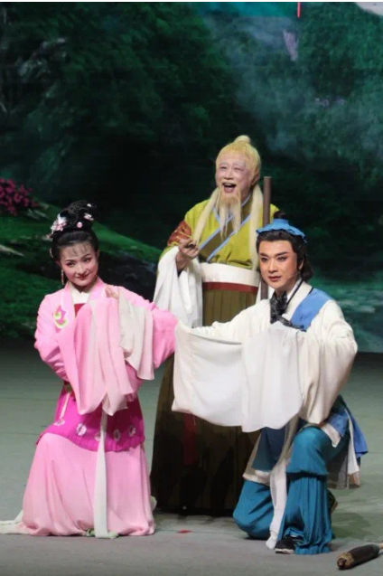 七仙女厭惡天宮凄清的歲月,于是不顧觸犯天規(guī)只身奔向了人間?;笔a樹下與董永“邂逅”,從同情到鐘情,并最終結(jié)為伉儷。董永賣身傅員外家為長工,七女跟隨他一同來到了傅家,并以一夜之間織成十匹錦絹而使三年長工改為了百日。滿工路上,二人歡歌笑語,向往未來美好的生活。不料恰在此時(shí),玉帝降旨,令七女回宮,生生拆散恩愛夫妻。臨別時(shí),七女給董永深情留言:“不怕天規(guī)重重活拆散,我與你天上人間心一條!”