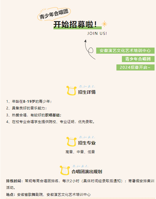 青春如歌 夢想啟航 | 安徽演藝文化藝術(shù)培訓中心青少年合唱團2024年開始招募啦!